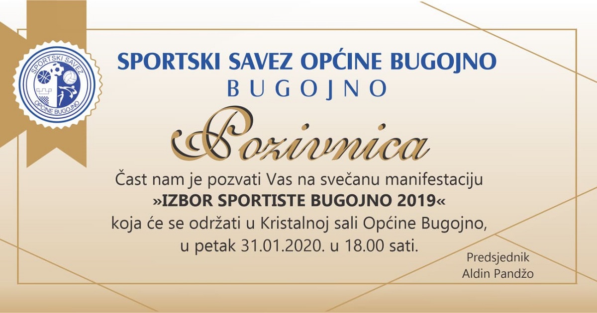 Najave Večeras svečani izbor sportiste Bugojna za 2019. godinu Objavio Redakcija - 31/01/2020 Izbor sportiste Bugojna za 2019. godinu održat će se večeras 31.1.2020. u 18 sati u Kristalnoj sali Općine Bugojno.