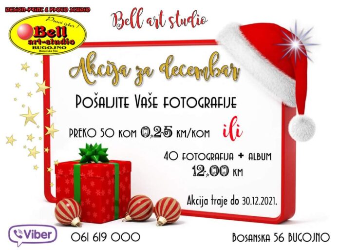 🌲 AKCIJA 🌲Bliže nam se zimski praznici. Obradujte sebe i Vaše najmilije poklonima iz naše ponude sa kojima nikada nećete pogriješiti. Pripremili smo decembarsku akciju na fotografije 10 x 15 cm po cijeni od 0,25 KM po komadu za minimalnu količinu od 50 kom, tako da 50 fotografija možete dobiti po cijeni od 12,50 KM ili 40 fotografija uz prigodan mini foto–album za 12,00 KM.