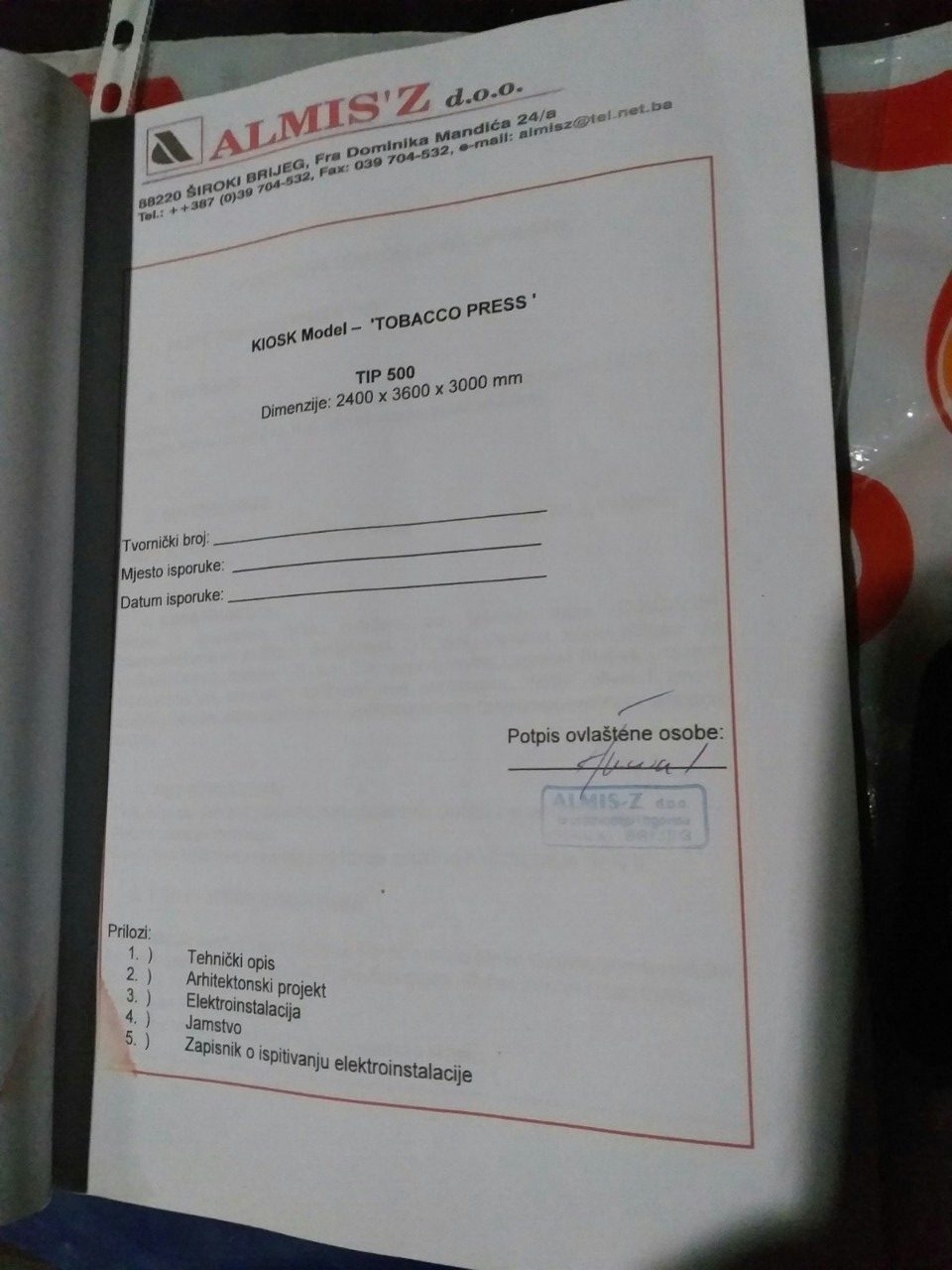 Prodaje se dobro očuvani kiosk kod Srednje tehničke škole preko puta Tajčija. Pogodan za sve namjene. Cijena 4500 KM ili u račun može auto do 3000 KM ostalo u novcu, zvati i pisati na Viber 061/272-525