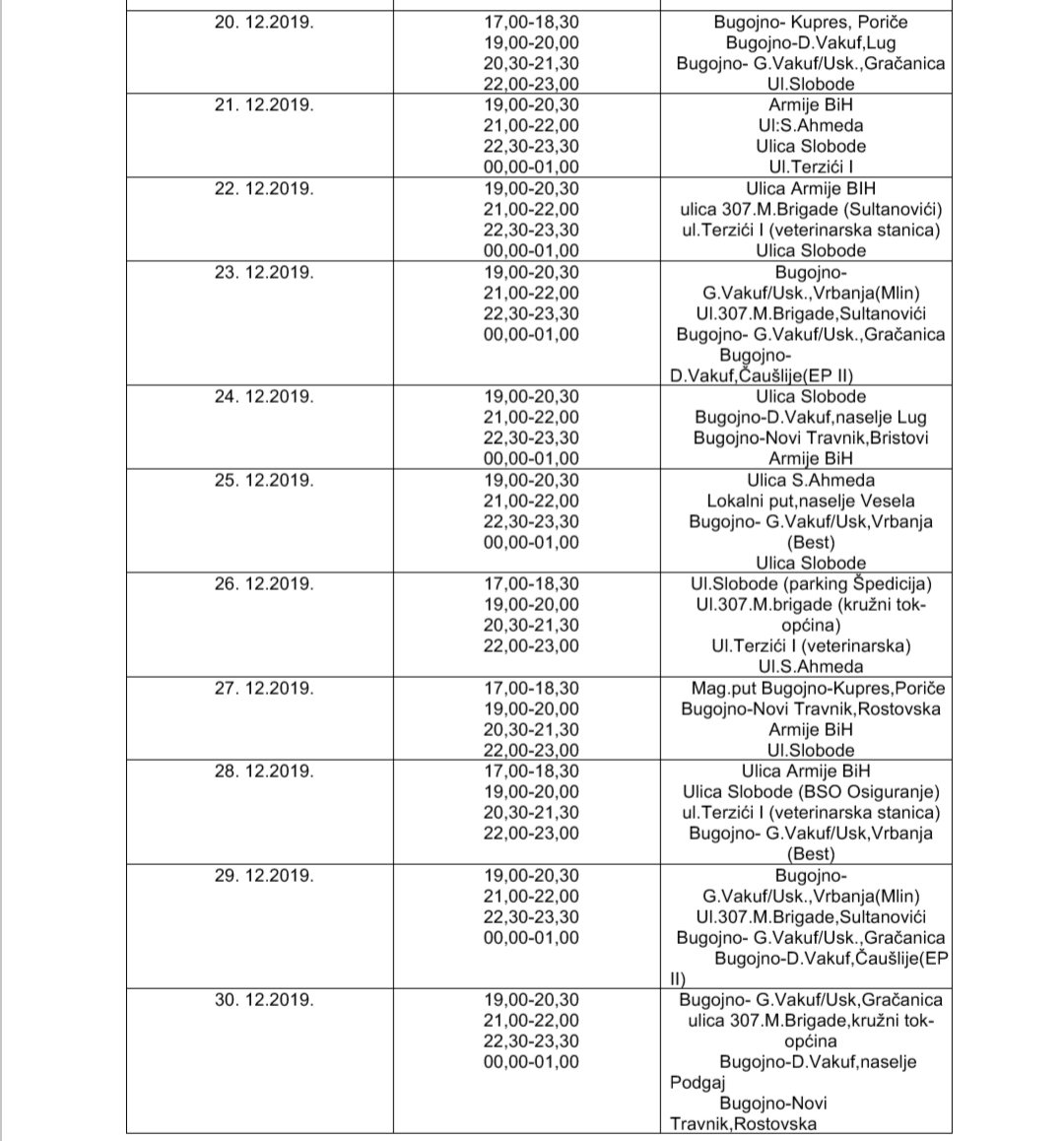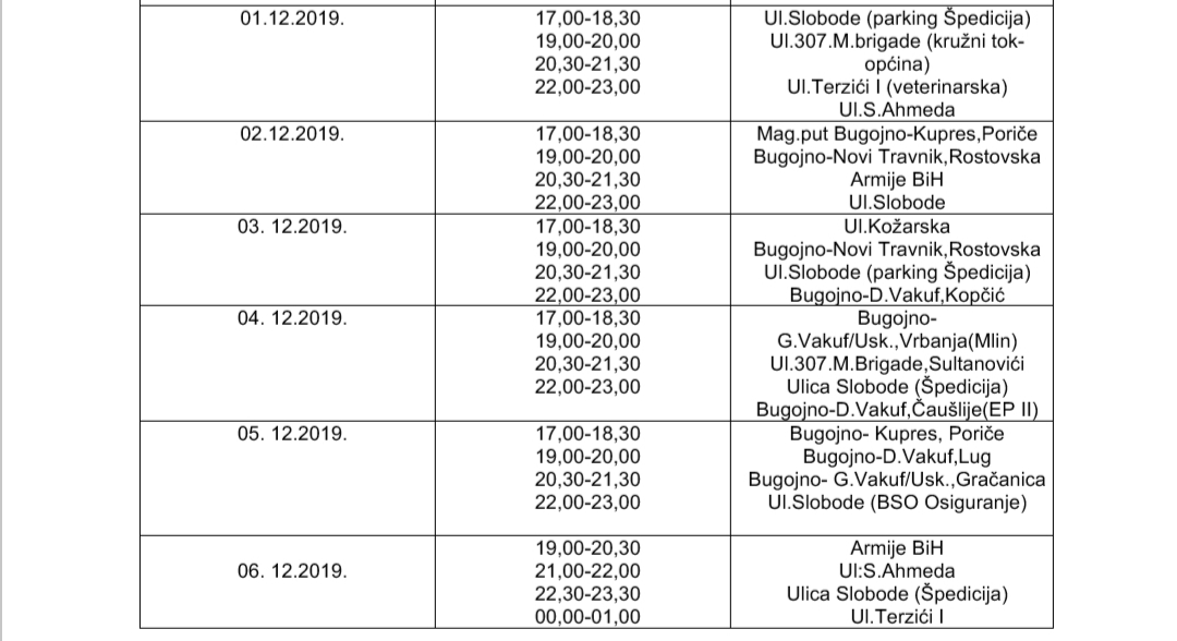 Bugojno Bugojno: Raspored noćnih radara u decembru Objavio Redakcija - 02/12/2019 Raspored noćnih radara u decembru na području Bugojna.