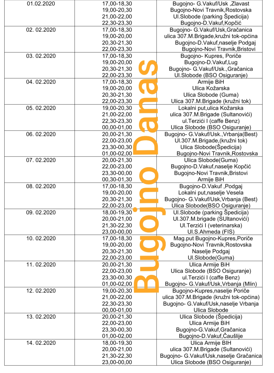 Bugojno Bugojno: Raspored noćnih radara u februaru Objavio Redakcija - 31/01/2020 Raspored noćnih radara u februaru na području Bugojna.