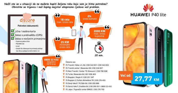 Novi Huawei P40 lite možete kupiti za samo 27,77 KM mjesečno, pogledajte klikom na OVDJE