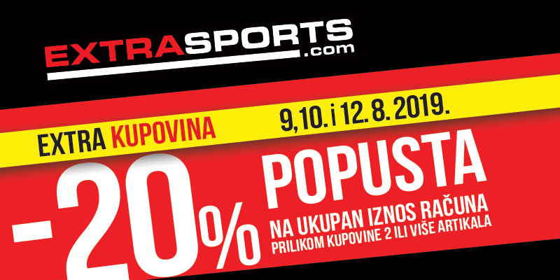 Ne propustite 20% popusta pri kupovini dva omiljena artikla, u svim Extra Sports radnjama.