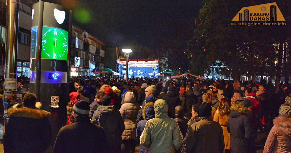 Mnogi građani Bugojna su 2019. dočekali na gradskom trgu kod BBI banke, uz bogat muzičko-zabavni program na temperaturi od 2 stepena celzijusa.