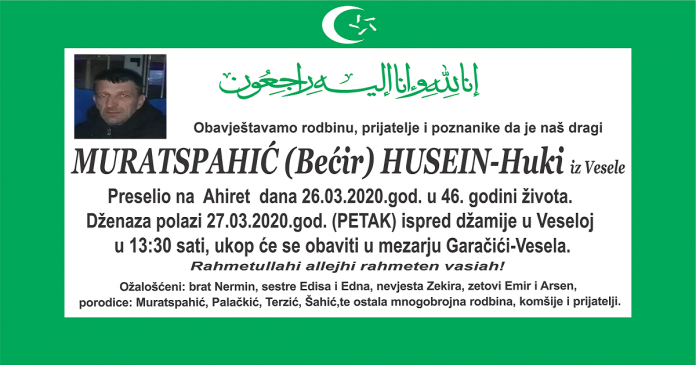 Početna Bugojno Na ahiret preselio Husein Muratspahić-Huki, dženaza u petak u 13:30