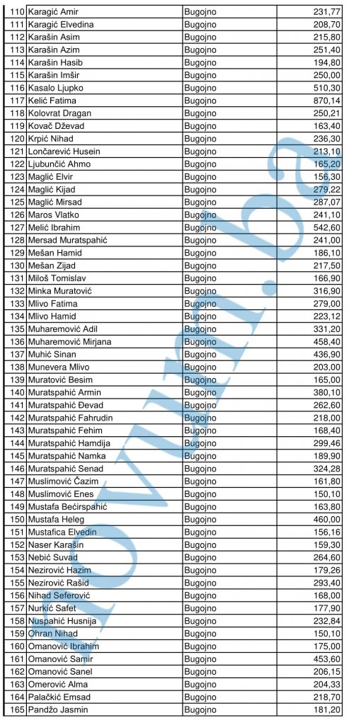 Za općinu Gornji Vakuf/Uskoplje broj odobrenih zahtjeva je 326 a iznos poticaja je 97.486,00 KM, za Bugojno 210 odobrenih zahtjeva 56.513,73 KM, za općinu Donji Vakuf broj odobrenih zahtjeva je 168 a iznos je 44.660,30, za općinu Jajce 19 zahtjeva a iznos je 4.342,90 KM, općina Travnik 80 zahtjeva a 18.298,70 KM, Novi Travnik 170 zahtjeva a 39.983,18 KM, općina Vitez 89 zahtjeva 20.564,20, općina Busovača 219 zahtjeva a 73.015,66 KM, općina Fojnica 108 zahtjeva a 29.750,25 KM, općina Kiseljak 66 zahtjeva a 17.482,04 KM i općina Kreševo 12 zahtjeva a 2.619,05 KM. Pravnim licima je, za 5 zahtjeva, odobreno 3.916,24.