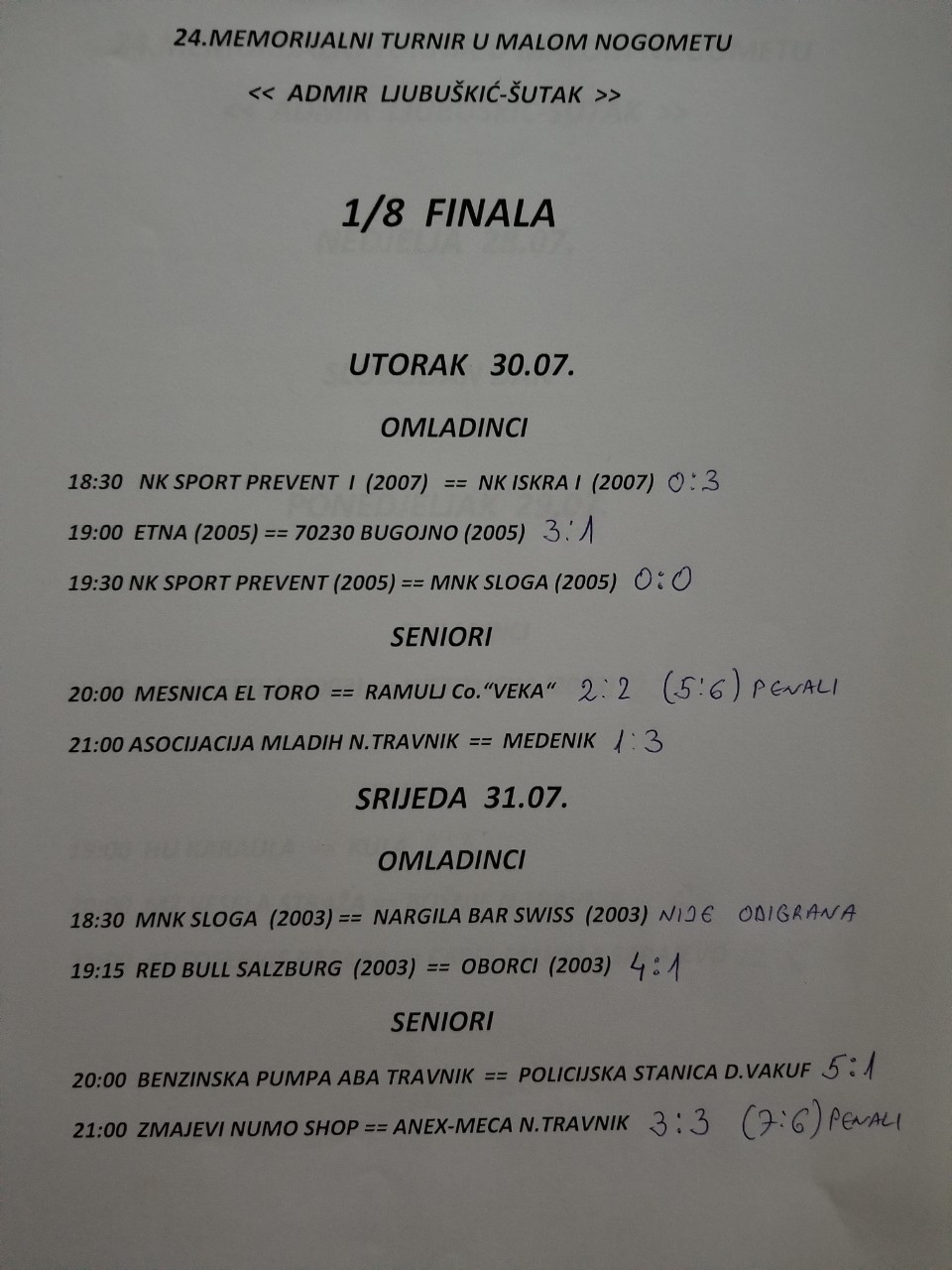 Početna Sport Osamnaesti dan Šutkovog turnira u Bugojnu (REZULTATI I RASPORED)