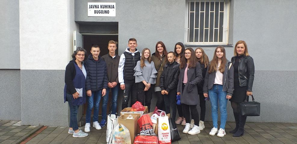 Naši učenici su u školi organizovali akciju prikupljanja namirnica za javnu kuhinju Bugojno. S prikupljenim namirnicama smo posjetili prostorije javne kuhinje. Srdačno smo dočekani od strane stalnih radnika javne kuhinje, koji su nam na stručno i emocionalno objasnili na koji način funkcioniše održavanje i rad javne kuhinje. Djeca su imala priliku da pomognu u spremanju paketa za korisnike, spremanju hrane, učestvovali su u podjeli hrane i naravno u čišćenju prostorija nakon radnog vremena.