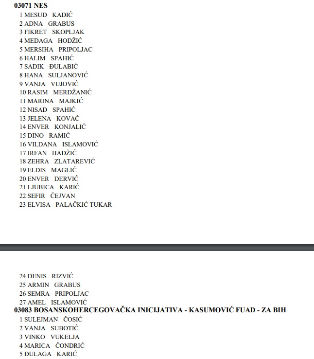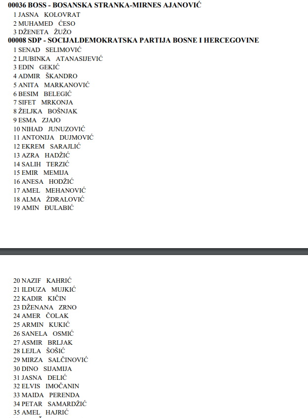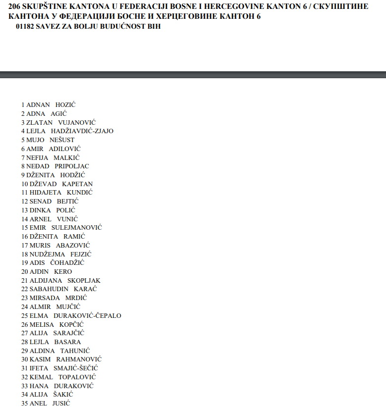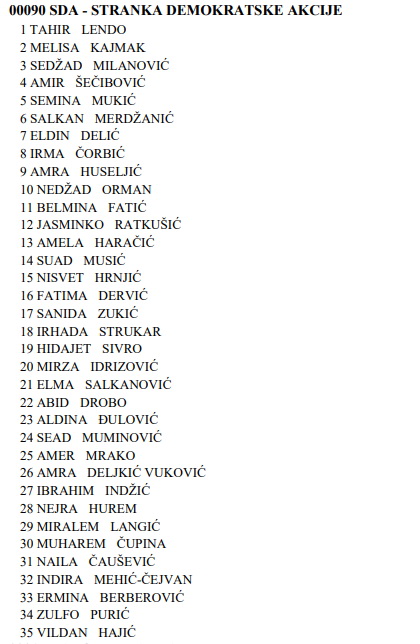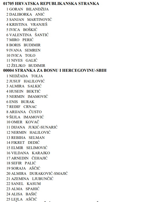 Centralna izborna komisija je danas objavila kandidatske liste za predstojeće izbore. Pogledajte za Skupštinu SBK kandidatske liste u nastavku: