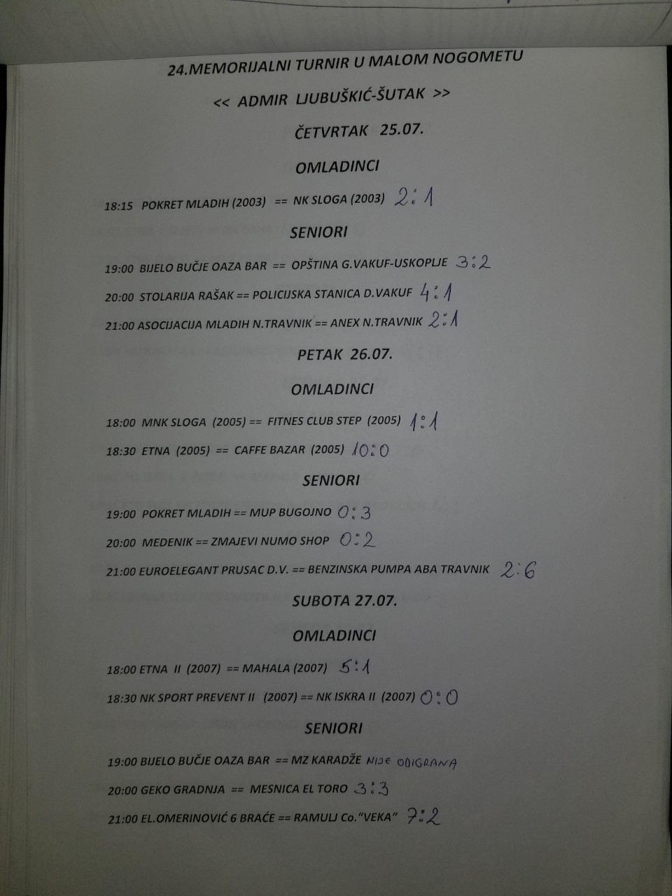 SportSport Bugojno Petnaesti dan Šutkovog turnira u Bugojnu (REZULTATI I RASPORED) Objavio Redakcija - 29/07/2019