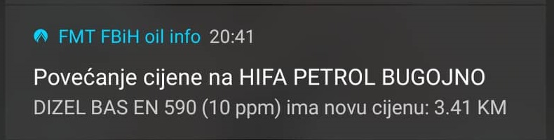 Večeras je poskupilo gorivo u Bugojnu na rekordnih 3.41 KM po litru te je ovo drugi uzastopni rast ove sedmice i rekordni ikada.