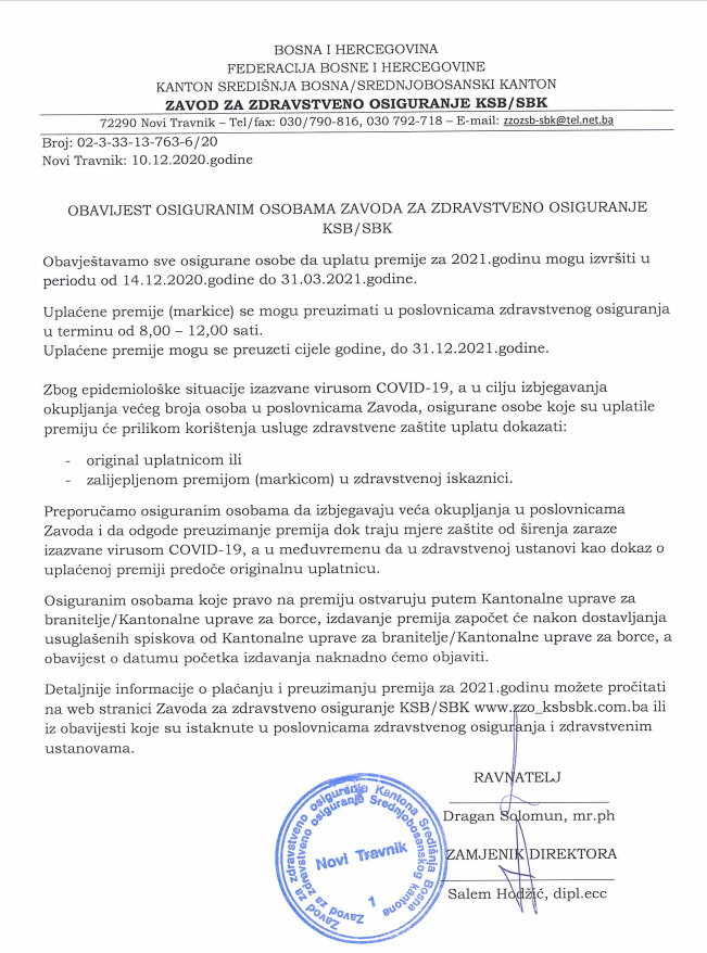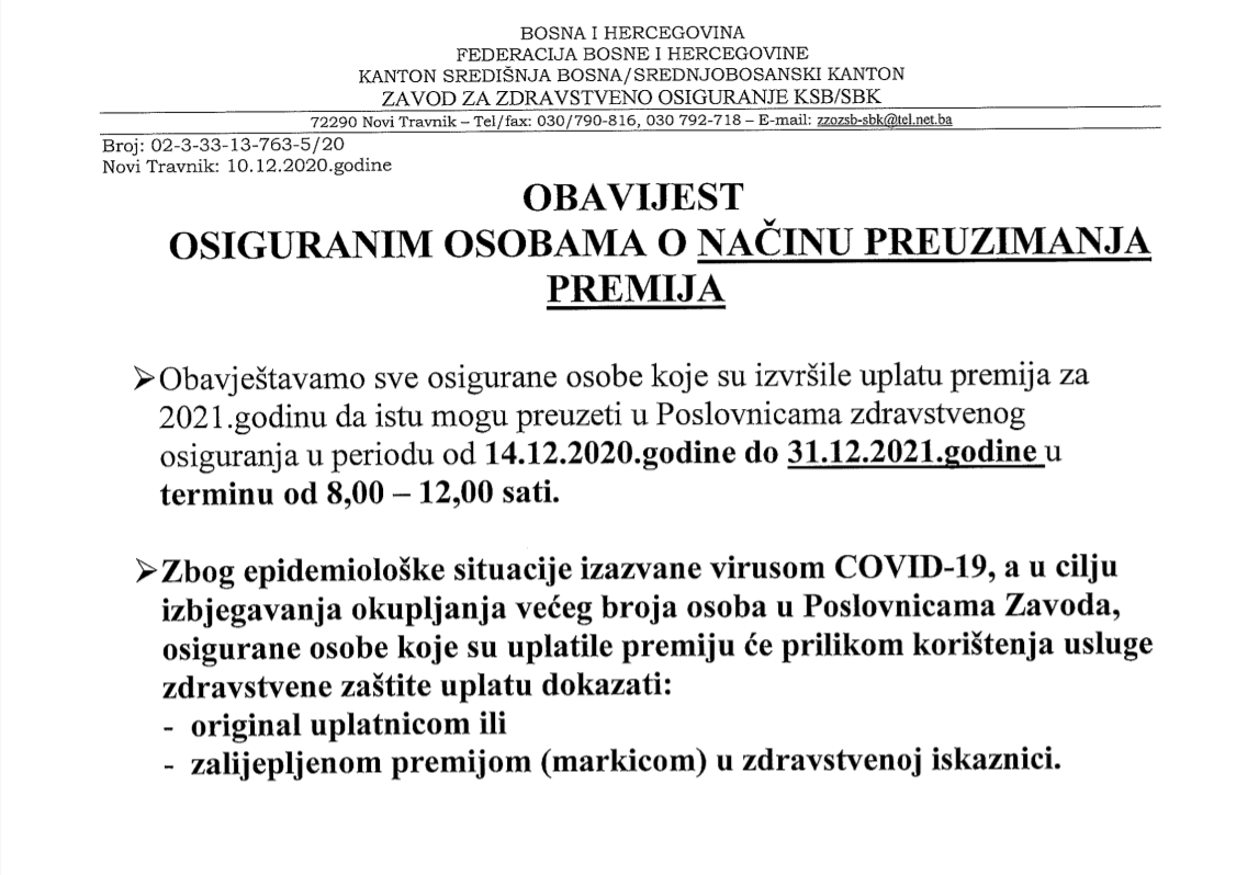 SBK: Počela prodaja zdravstvenih markica za 2021.godinu