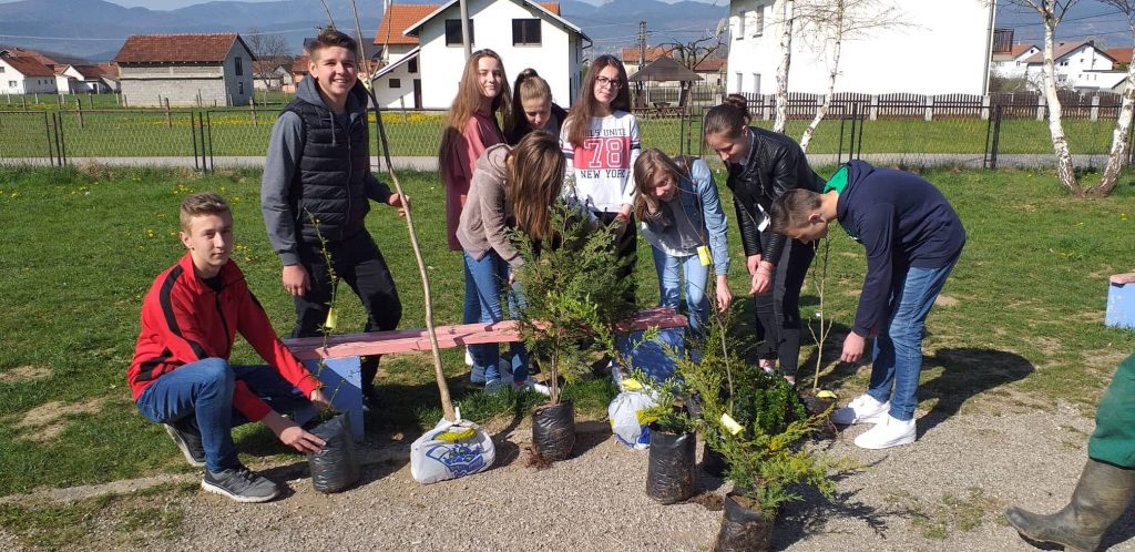 Za našu prvu radionicu odabrali smo uljepšavanje školskog dvorišta, gdje ćemo saditi drveće i očistiti školski prilaz. Ova akcija je vrlo bitna jer je 22.4. (danas) Dan planete Zemlje, te smo kroz ovu ekološku akciju htjeli obilježiti i ovaj bitni datum.