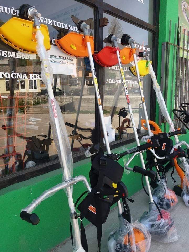 Širok izbor zaštite i ishrane za jagodasto voce( kristaloni I II i III, fungicidi, herbicidi) - Mašine i alati ( kopačice, kosačice, motorni trimeri, bušilice, brusilice, motorne pile, aparati za pranje, kompresori, aparati za varenje…) Garancija 2 godine.